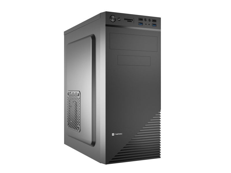 NATEC Cabassu G2. Form factor: Midi Tower, Type: PC, Product colour: Black. Front fans diameters supported: 120 mm, Side fans installed: 1x 120 mm, Rear fans installed: 1x 80 mm. Supported HDD sizes: 2.5,3.5". Width: 197 mm, Depth: 403 mm, Height: 414 mm