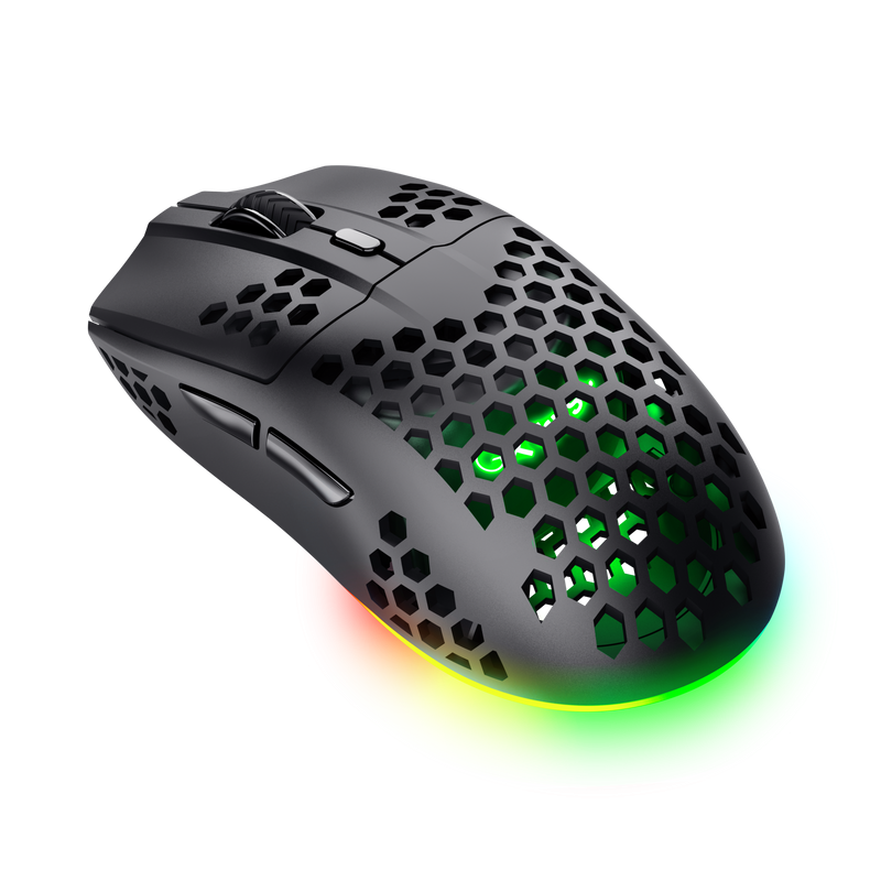 Trust GXT 929 Helox. Form factor: Right-hand. Movement detection technology: Optical, Device interface: RF Wireless, Movement resolution: 4800 DPI, Buttons type: Pressed buttons, Buttons quantity: 6, Scroll type: Wheel. Illumination colour: Multi. Power source: Batteries. Product colour: Black