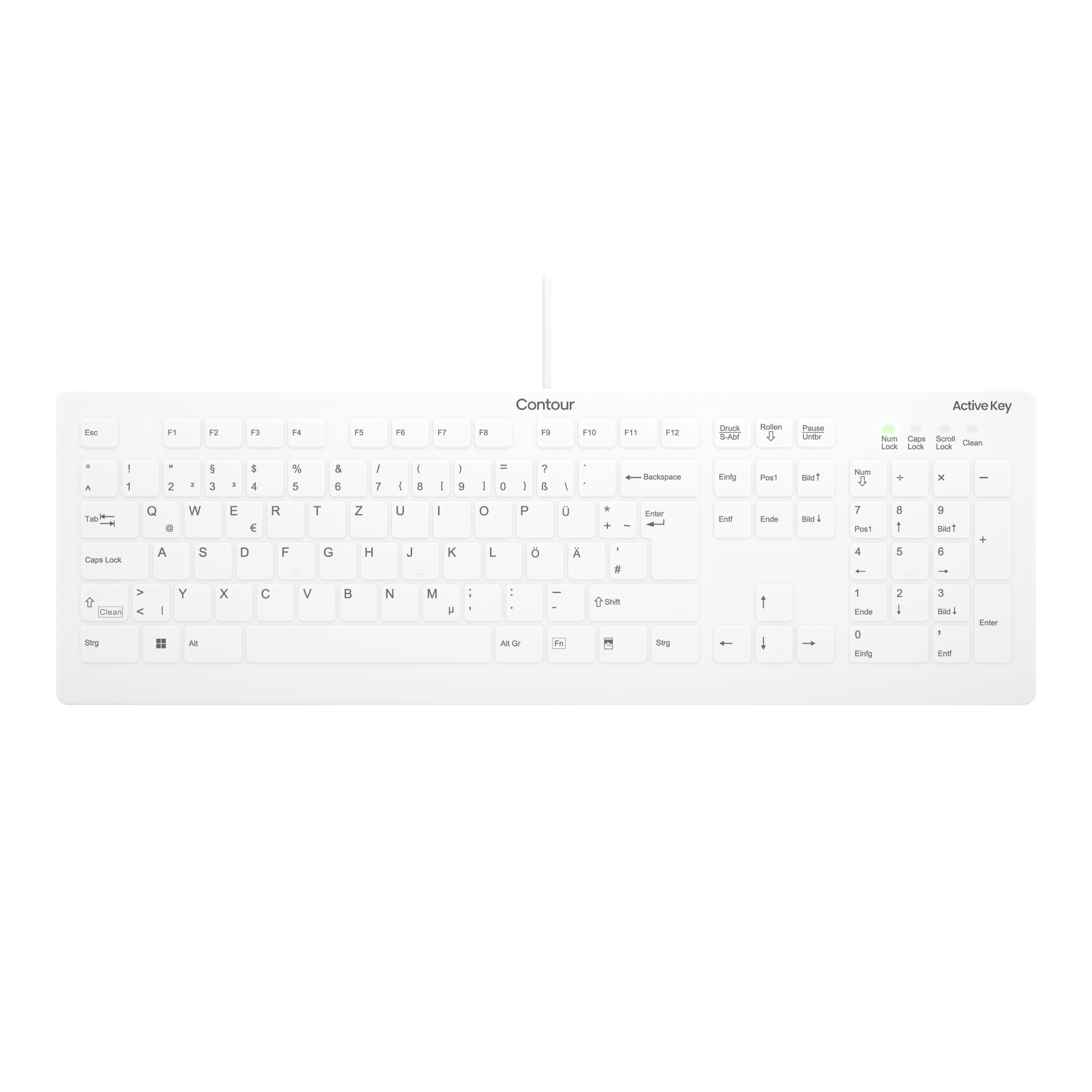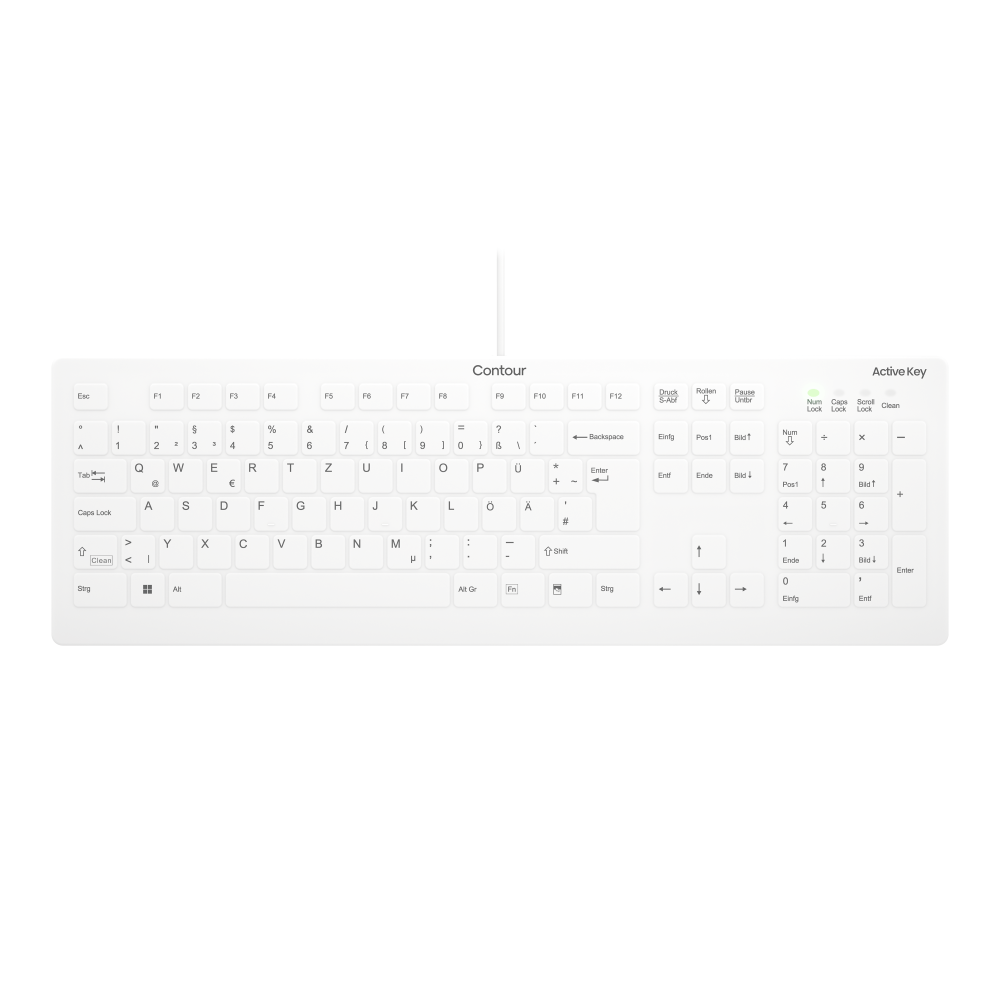 Contour Design Active Key Contour QuickClean Medical Keyboard IP68 Full-Size Wired White DE C8112, Full-size (100%), Wired, USB, Scissor key switch, QWERTZ, White