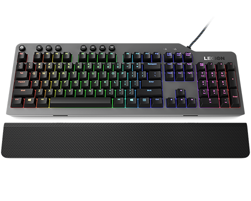 Lenovo Legion K500. Keyboard form factor: Full-size (100%). Keyboard style: Straight. Connectivity technology: Wired, Device interface: USB, Keyboard key switch: Mechanical, Keyboard layout: QWERTY, Keyboard number of keys: 104. Backlight type: RGB LED, Wrist rest. Cable length: 1.8 m. Recommended usage: Gaming. Product colour: Black, Grey