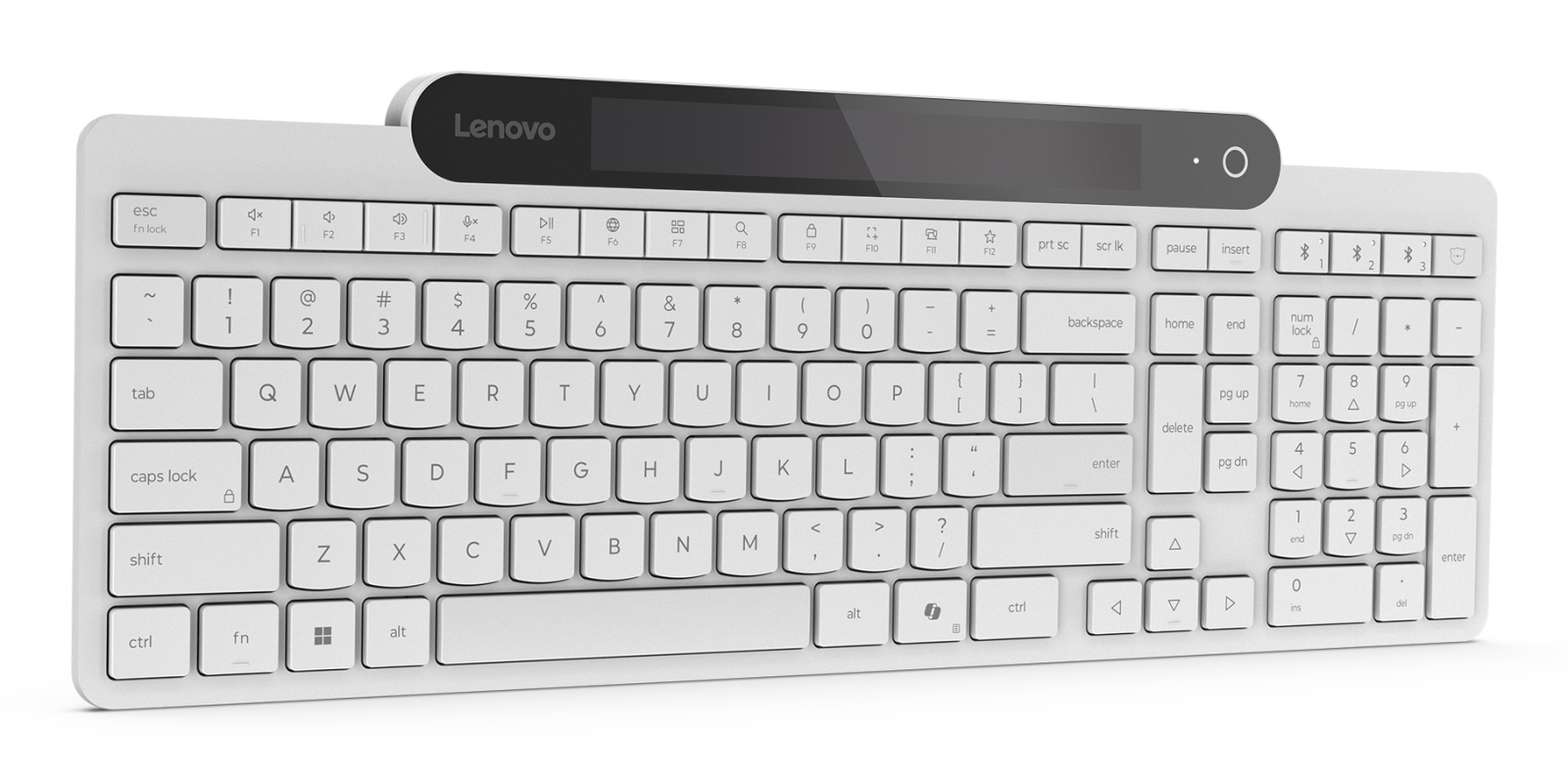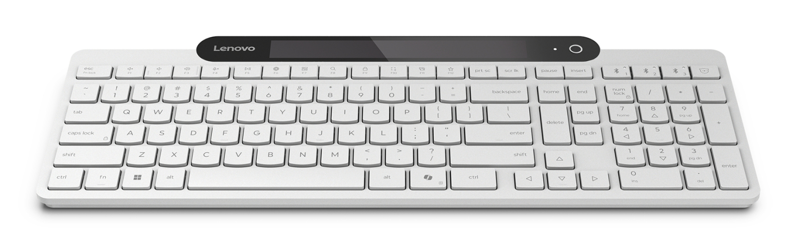 Lenovo 800. Keyboard form factor: Full-size (100%), Connectivity technology: Wireless, Device interface: Bluetooth, Keyboard key switch: Plunger key switch, Keyboard number of keys: 109, Recommended usage: Office. Product colour: White
