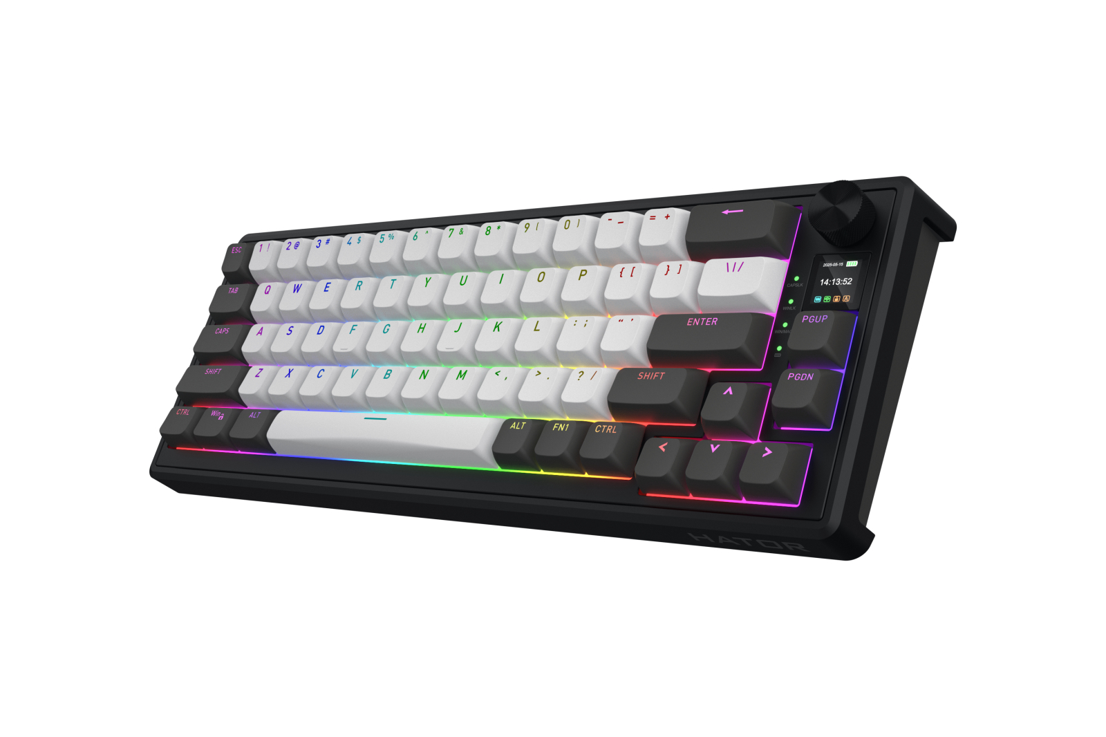HATOR Skyfall Pro Wireless 65. Keyboard form factor: 65%. Keyboard style: Straight. Connectivity technology: Wired & Wireless, Device interface: USB + RF Wireless + Bluetooth, Keyboard key switch: Mechanical, Keyboard layout: QWERTY. Backlight type: RGB LED. Recommended usage: Gaming. Product colour: Black, Grey
